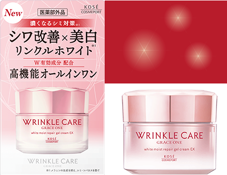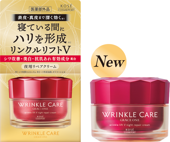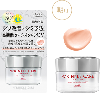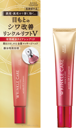 表情が表れやすい目もと・口もとをはじめとするシワに、有効成分が表皮・真皮まで深く効果を発揮し、シワを改善します。